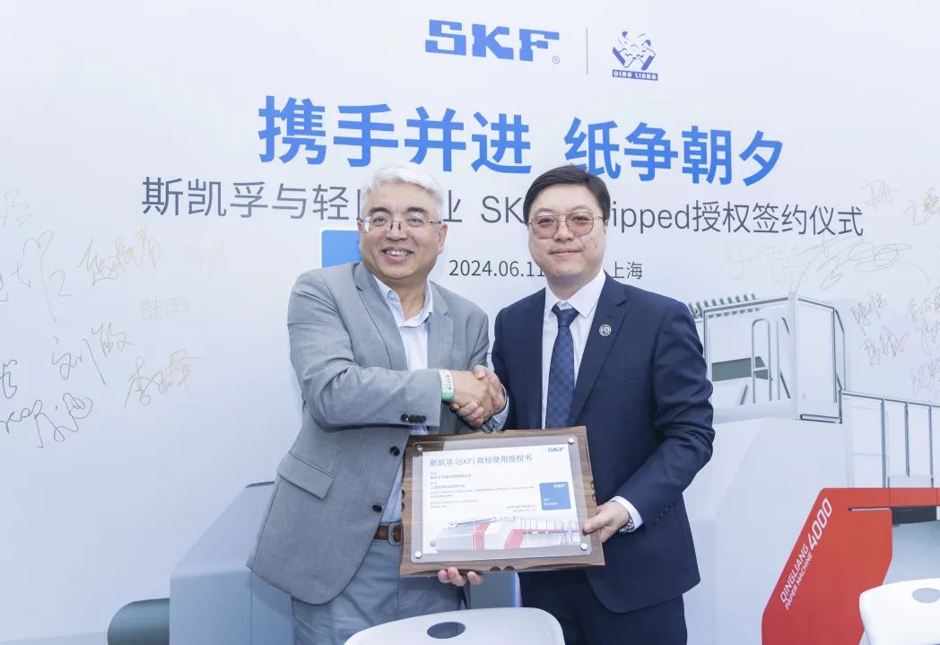 6月11日,斯凱孚與上海輕良在上海成功舉辦SKF Equipped授權(quán)簽約儀式。斯凱孚許可上海輕良在其生產(chǎn)的裝配有SKF產(chǎn)品的紙機(jī)上使用”SKF Equipped”標(biāo)識。這意味著雙方除在技術(shù)、產(chǎn)品等方面的戰(zhàn)略合作外,在品牌價值提升上也在進(jìn)行深度合作,共同開啟了追求卓越、創(chuàng)新發(fā)展的全新篇章。