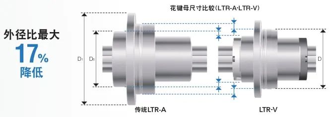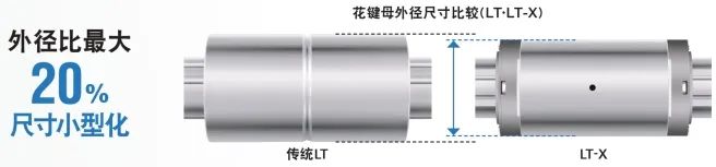 LTR-V型在滾珠花鍵部采用LT-X型,比傳統(tǒng)型號LTR-A型更小。